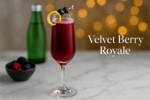 Velvet Berry Royale — morango e mirtilo em flute. Harmoniza: chèvre, nozes & uvas.